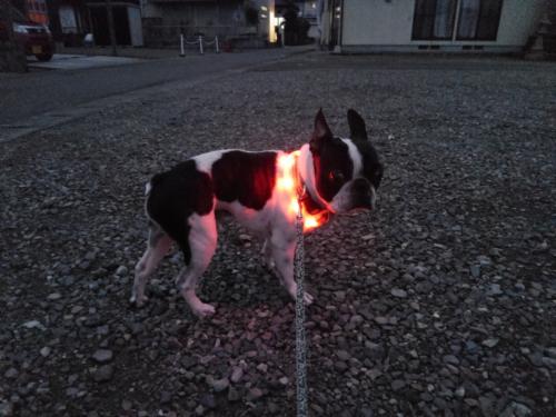 こむぎです。 夕方のお散歩です。 暗いので、キラキラの首輪をはめています。 ヤスくんが写真を撮っています。 寒いので早く帰りたいのですけれど・・・ ほら、さっさと帰りますよ。 ボクは、ストーブの前に戻りたいのです。 早くU`・ω・´U もう出すもの出したので未練はありませんU・Д・U ↓ ↓ ボクがはめてるキラキラ光る首輪です ランキング参加中です。