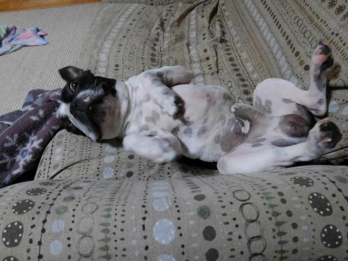 こむぎです。 春の間、春眠暁を覚えず・・・なんて書いていました。 もう初夏ですけれど、あんまり関係はないみたいです。 このブログが100記事の時に、ボクの若い?頃の寝相をアップしました。 ひっくり返ってソファーで寝てるアレです。 今も、あんまり変わってなかったみたいなのですU・Å・U 体は大きくなったので、はみ出たりもしていますけれど・・・ ま、三つ子の魂百までってヤツですねU`・ω・´U ランキング参加中です。